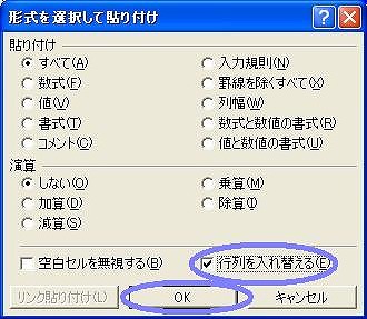 Excelで入力したデータの行と列を入れ替えるには、形式を選択して貼り付けを用いる。