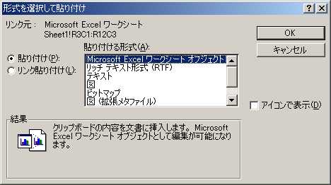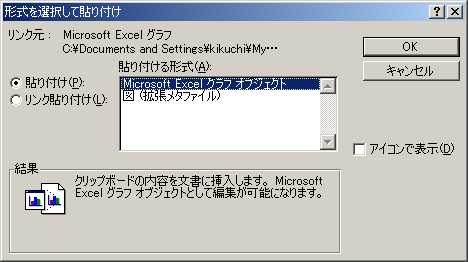 グラフの場合には形式として、Microsoft Excel グラフ オブジェクトを選択し、OKをクリック