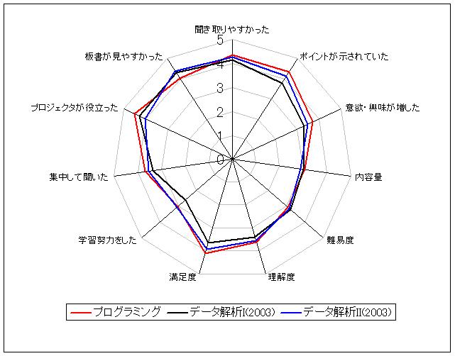 Q1. 話し方は明瞭で聞き取りやすかった Q2. 授業の中で重要なポイントをはっきり示してくれた Q3. 授業では、学習意欲や興味が増すように工夫されていた Q4. 授業の内容量はどうであったか Q5. 授業の難易度はどうであったか Q6. 授業内容は理解できたか Q7. 授業は総合的に見て満足のいくものであった Q8. 予習・復習・宿題など積極的に学習努力をした Q9. 授業中は、集中して教員の話を聞いた Q10. プロジェクタを利用した解説は理解を深めるために役立った Q11. 黒板への板書は明瞭で見やすかった(調査票PDFファイル)