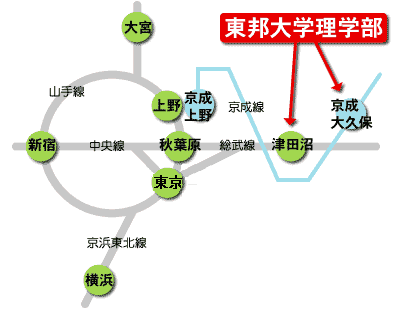 京成大久保駅(東京駅から、JR線−京成線で1時間弱)
